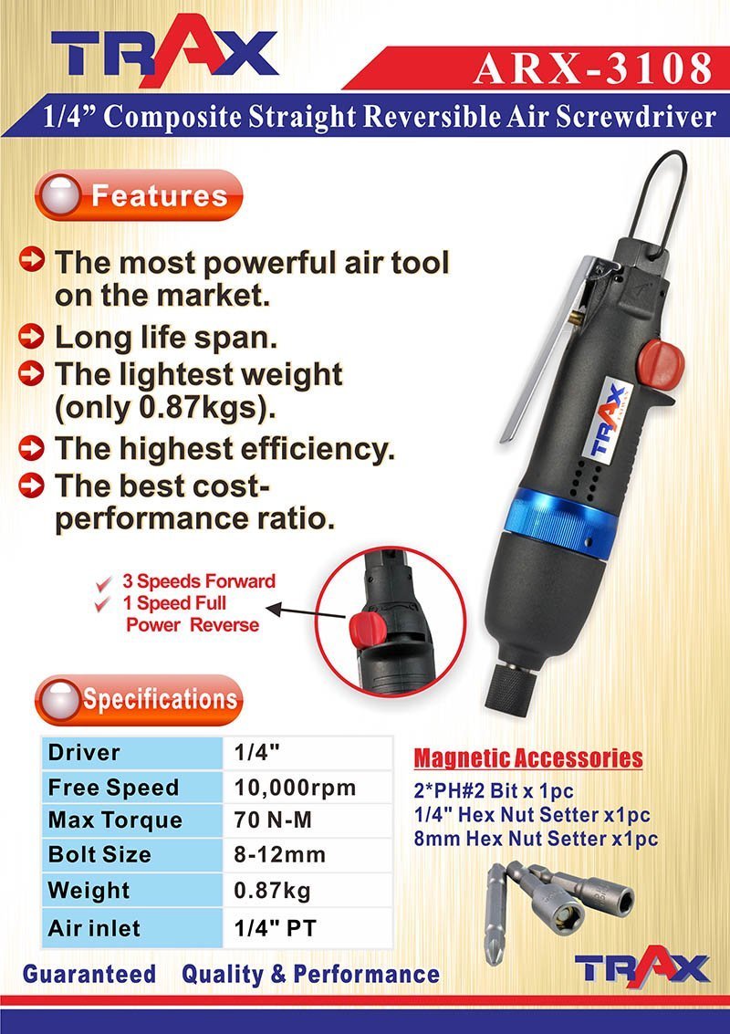 ARX-3108 [1/4” Composite Straight Reversible Air Screwdriver] ARX-3108 [1/4” Composite Straight Reversible Air Screwdriver]