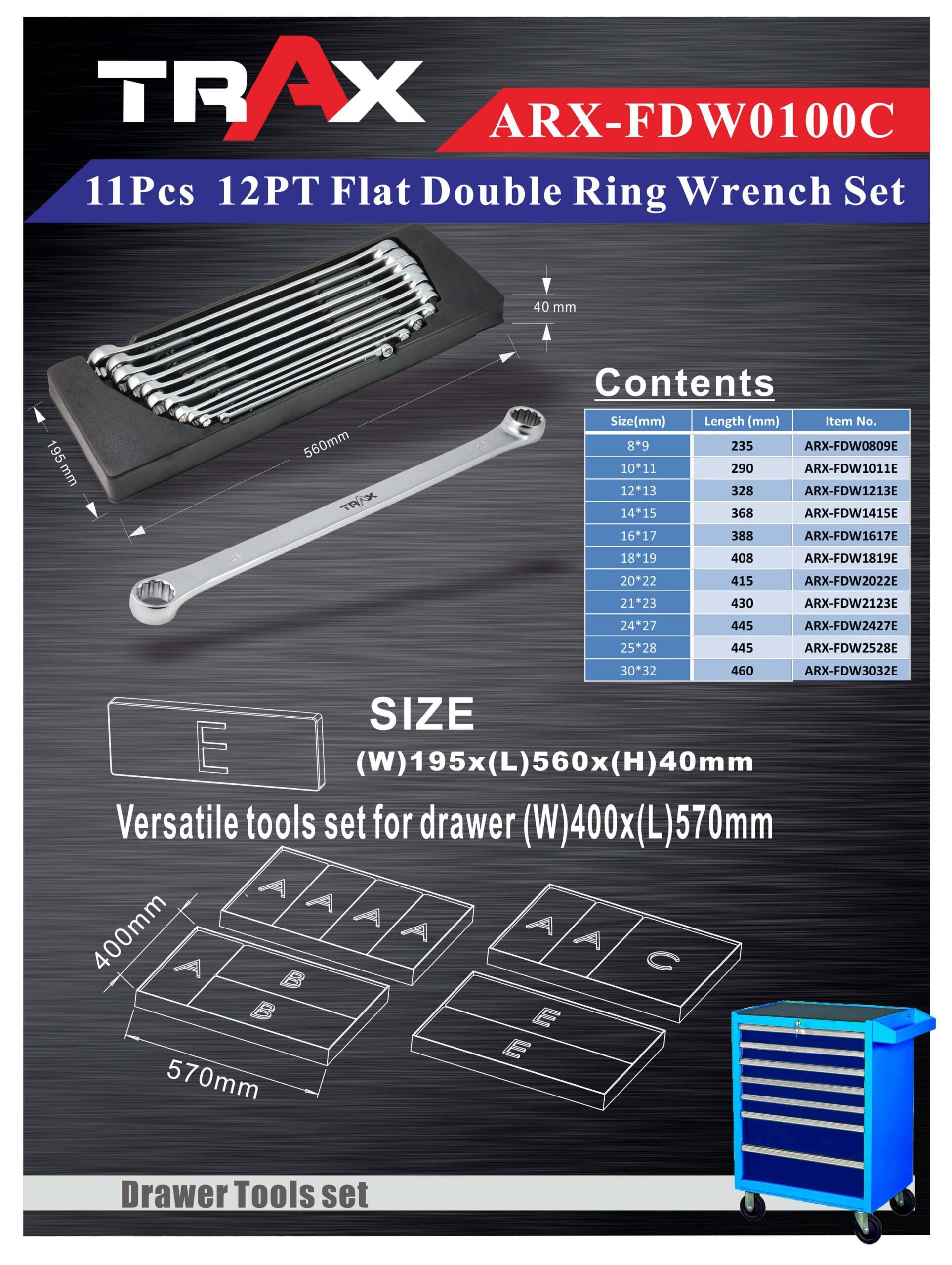 ARX-FDW0100C[11Pcs 12PT Flat Double Ring Wrench Set]