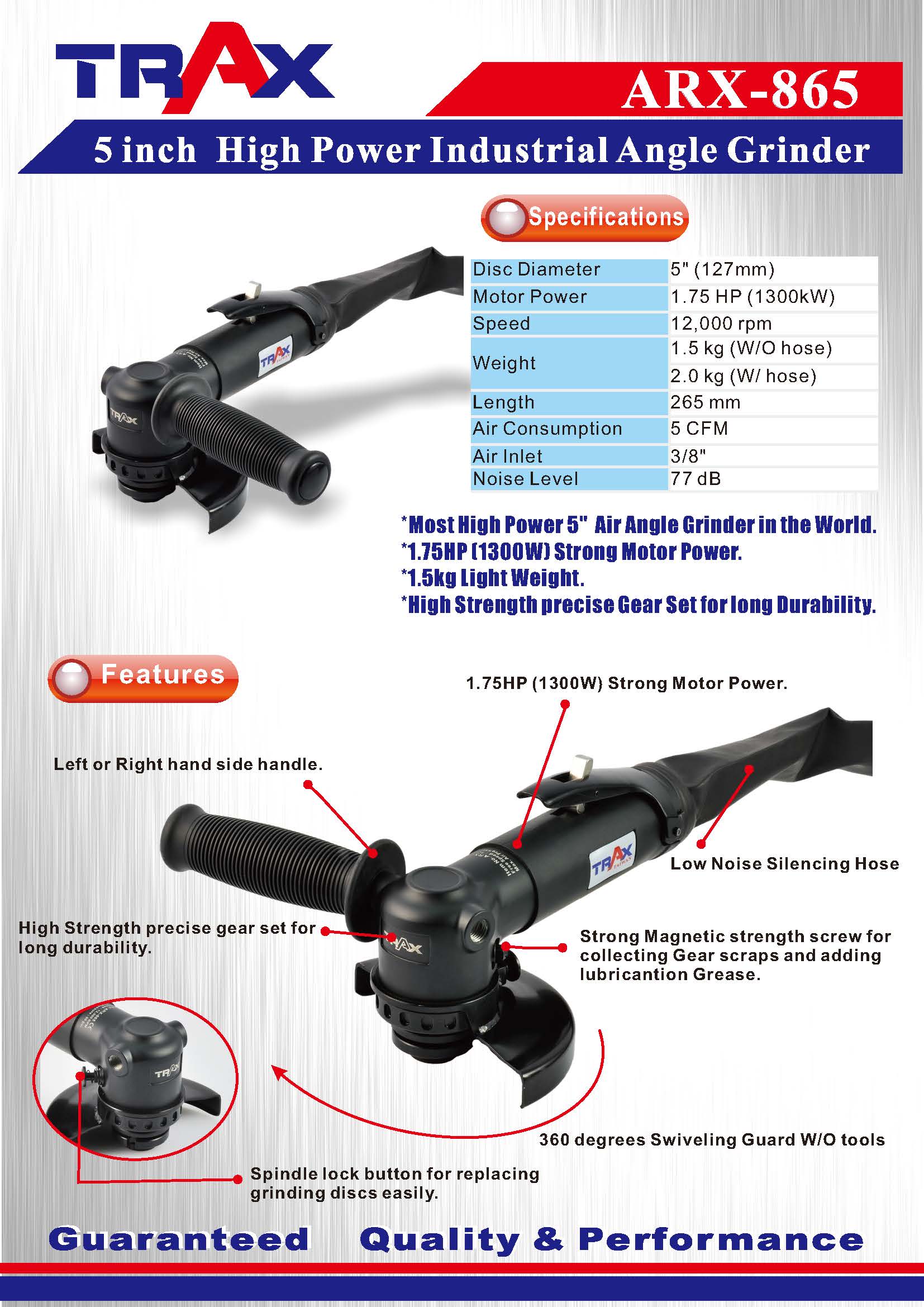 ARX-865 [5 inch High Power Industrial Angle Grinder] Posted on 2016-09-112017-05-12 by Traxtools-TW ARX-865 [5 inch High Power Industrial Angle Grinder]