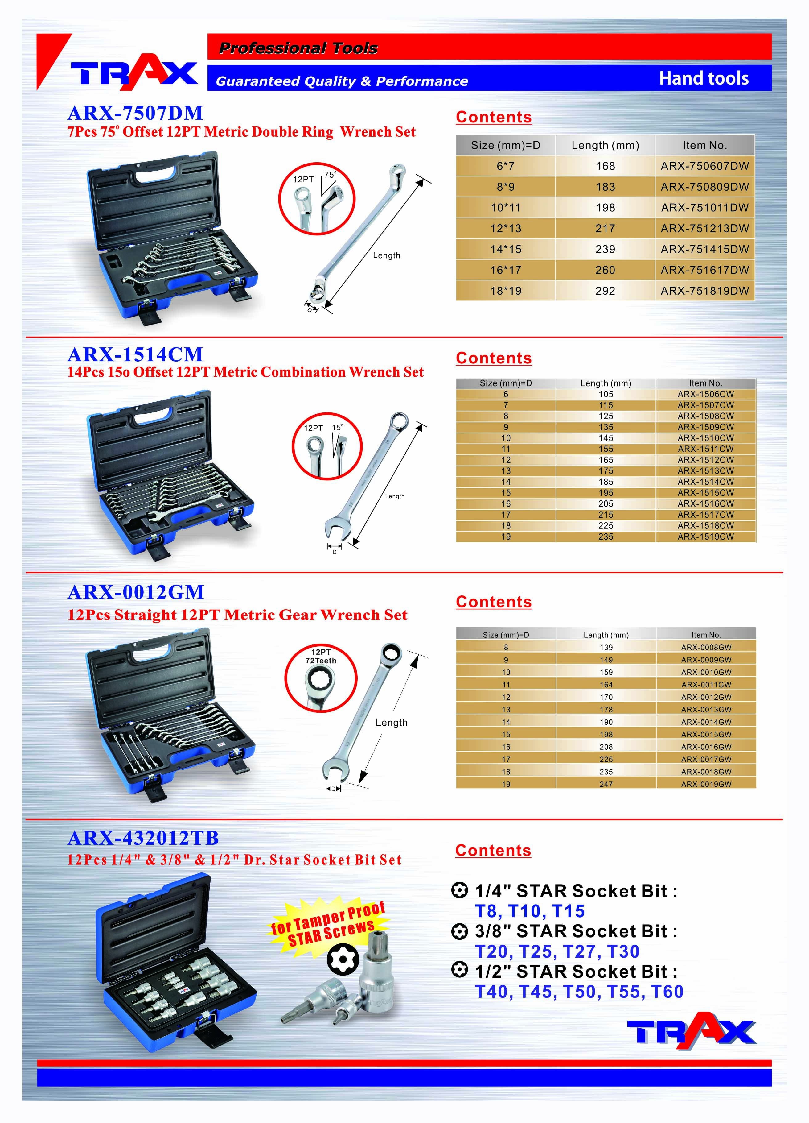 New Wrench Sets [ARX-7507DM][ARX-1514CM][ARX-0012GM][ARX-432012TB] New Wrench Sets [ARX-7507DM][ARX-1514CM][ARX-0012GM][ARX-432012TB]