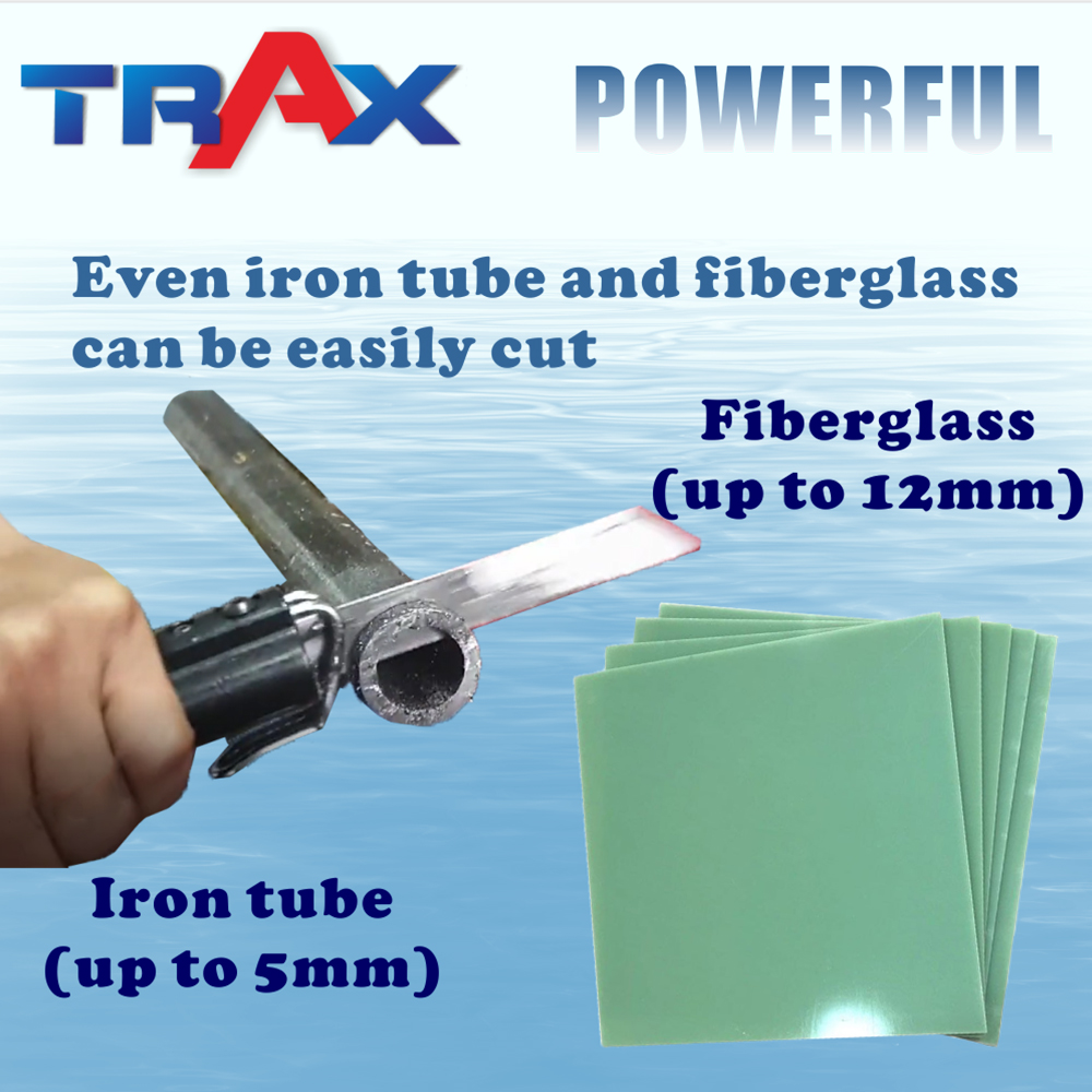 Powerful than you think. Even iron tube or fiberglass can be easily cut.